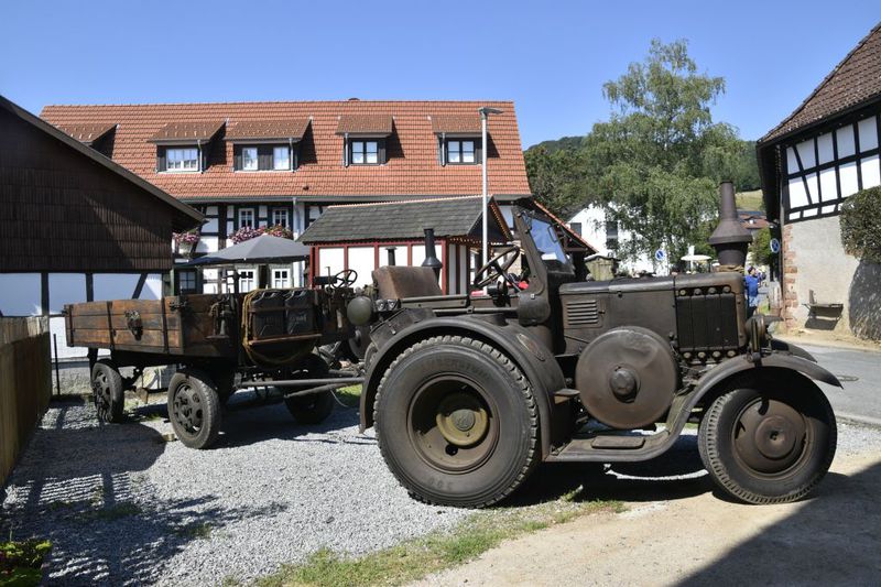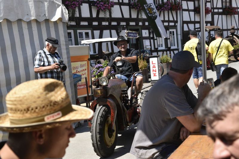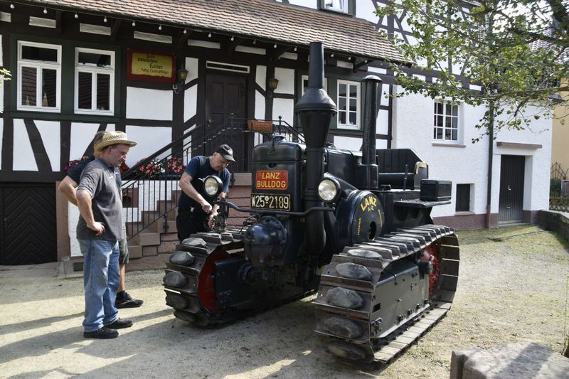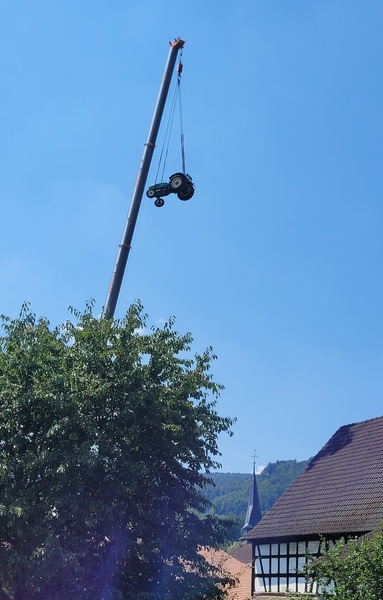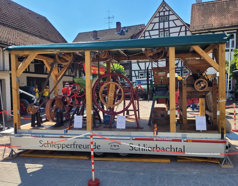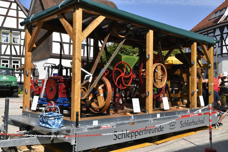 Ein echter Hingucker war erneut der Schlepper, der an einem Kran über Schlierbach schwebte und schon von weitem auf das Fest hinwies. Das größte Highlight jedoch stellte die Ausstellung eines historischen Dampftraktors dar: 1896 im englischen Leeds gebaut, war er bis 1960 im Einsatz und gehört heute zu den weltweit nur noch fünf bekannten Exemplaren. Für das Schlierbacher Treffen stellte ein privater Sammler aus Hanau dieses außergewöhnliche Stück Technikgeschichte zur Verfügung.
