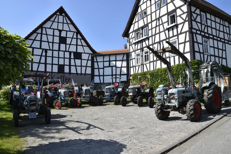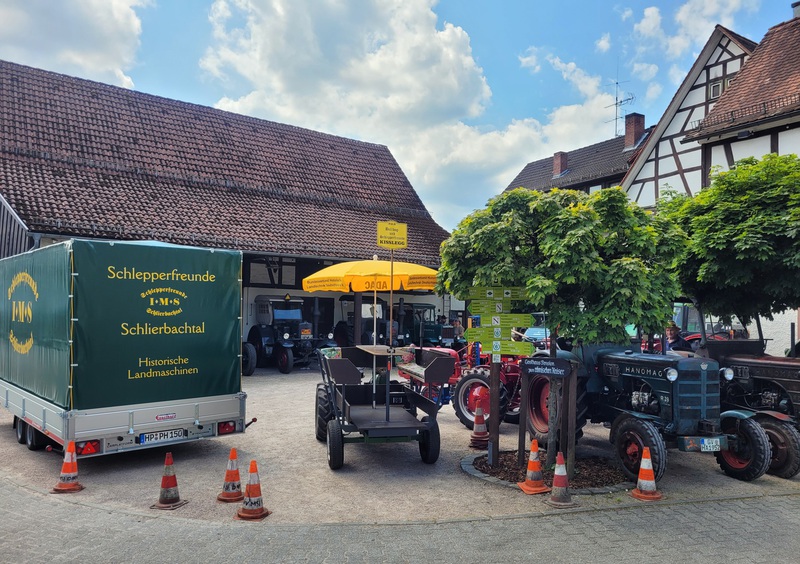 zur Kulisse: Schlepper und Geräte füllten Höfe, Gärten und Plätze. Dank der großen Hilfsbereitschaft der Schlierbacher Bevölkerung, die ihre Flächen zur Verfügung stellte, entstand eine einmalige